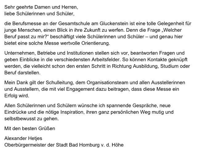 Wir möchten Sie herzlich zur Berufsmesse 2025 in Bad Homburg einladen.